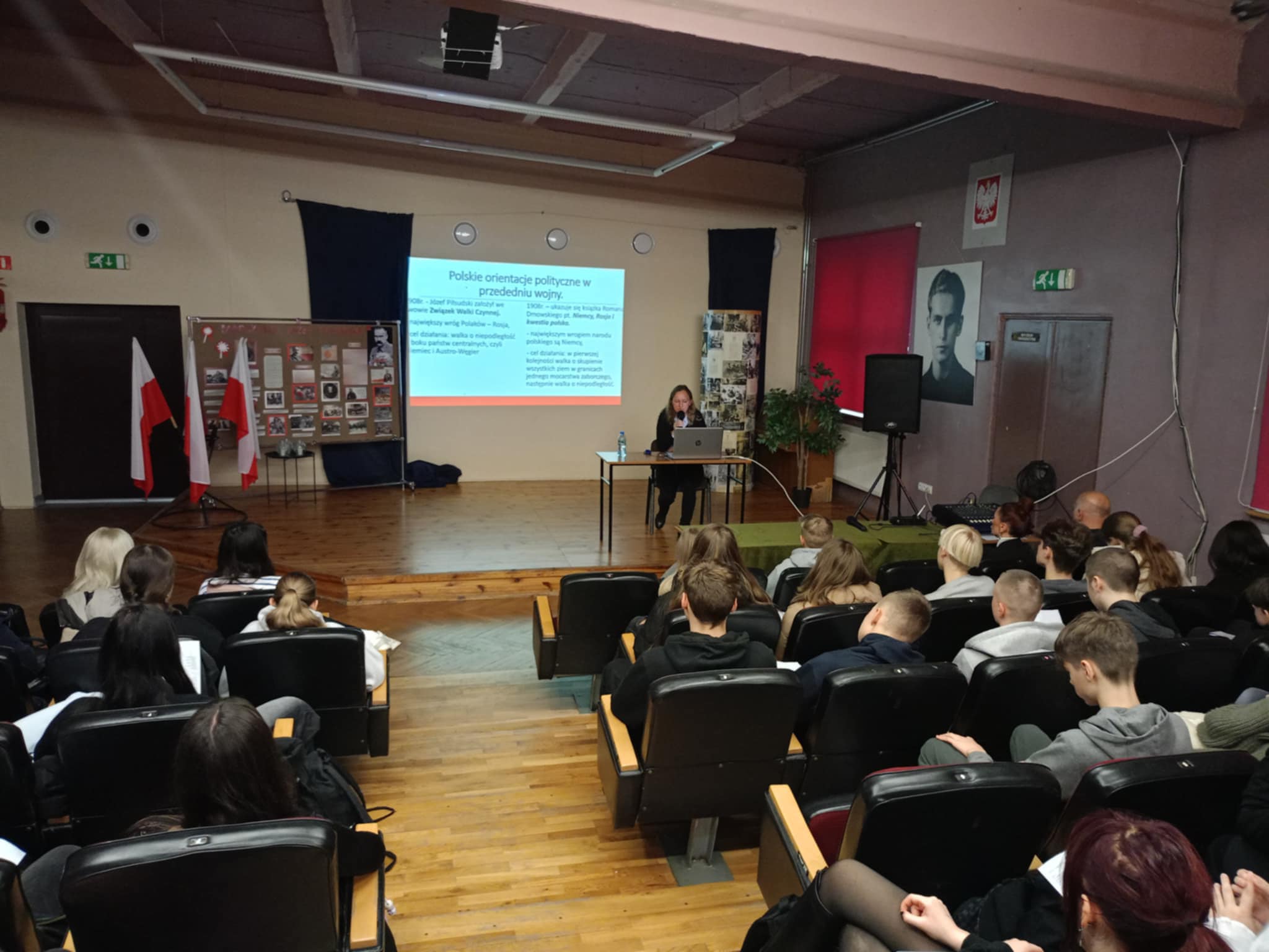 W ramach obchodów Święta Niepodległości w naszej szkole licealiści przygotowali występ artystyczny pt.: „Wolność. Kocham i rozumiem”. Gościliśmy ponadto wykładowcę z Uniwersytetu Pomorskiego - panią dr Małgorzatę Mastalerz-Krystjańczuk. Pani doktor w pasjonujący sposób przekazała młodzieży wiedzę na temat wydarzeń związanych z Dniem Niepodległości.